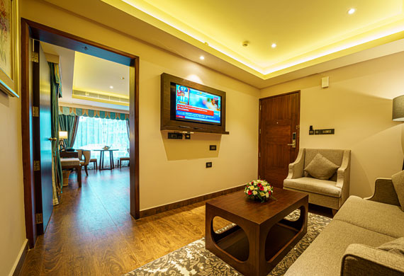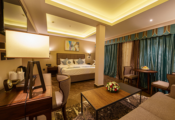 Relax in a spacious Mini Suite, a king size bed plus separate living and dining area. The bathrooms have hot tub with indulgent toiletries, bathrobes and slippers. Your in-room facitities include free Hi Speed WiFi, LED TV, a large study desk & chair, well stocked fridge & mini bar, safe, tea and coffee facilities and complimentary mineral water, fruit basket & cookies each day. You can also enjoy a complimentary breakfast buffet at the Masala Craft restaurant.